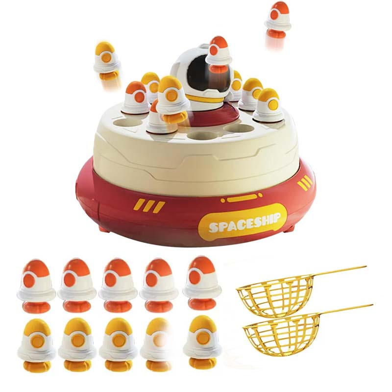Lihtne ja lõbus mäng: Kinnitage mänguasi käivitamismehhanismile, keerake, et ühendada nooled pöörleva ja peamise osaga, ja vajutage algusnuppu. Pange rakett käivitamismehhanismi, võtke võrk ja vajutage vahetusnuppu, et hakata rakette püüdma!