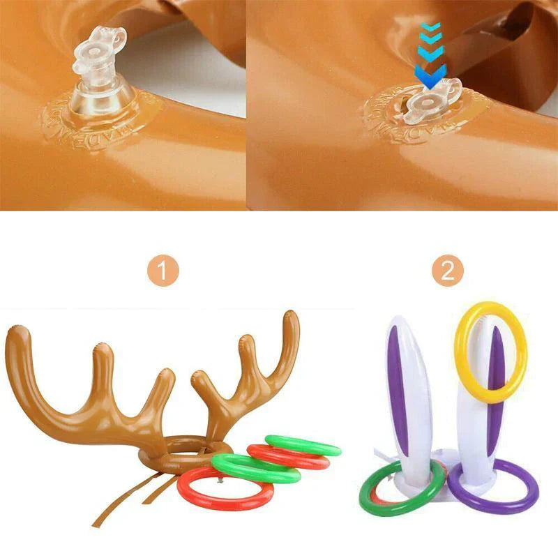See täispuhutav sarvede loopimise mäng sobib suurepäraselt nii lastele kui ka täiskasvanutele – saad visata rõngaid põdra sarvede peale või kanda neid ise ja luua lõbusa mänguõhkkonna.