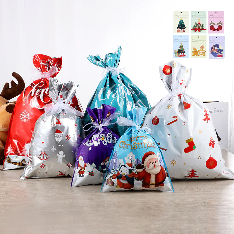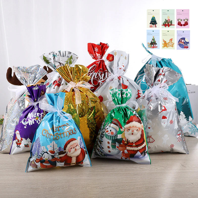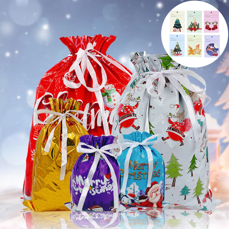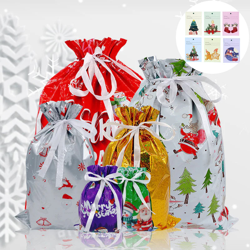 💎 Kõrge kvaliteediga materjalid: Valmistatud vastupidavast OPP-st, alumiiniumfooliumist ja PE-st, need kotid taluvad pidustuste elevust ja näevad kuuse all suurepärased välja.