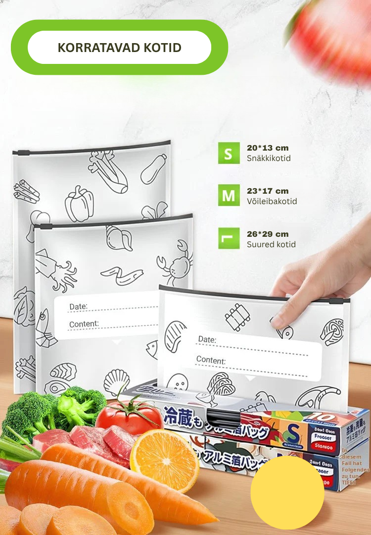 Meie korduvkasutatavad sulgurkotid on suurepärane lahendus, mis aitab toitu pikka aega värskena hoida ja vähendada jäätmete hulka!