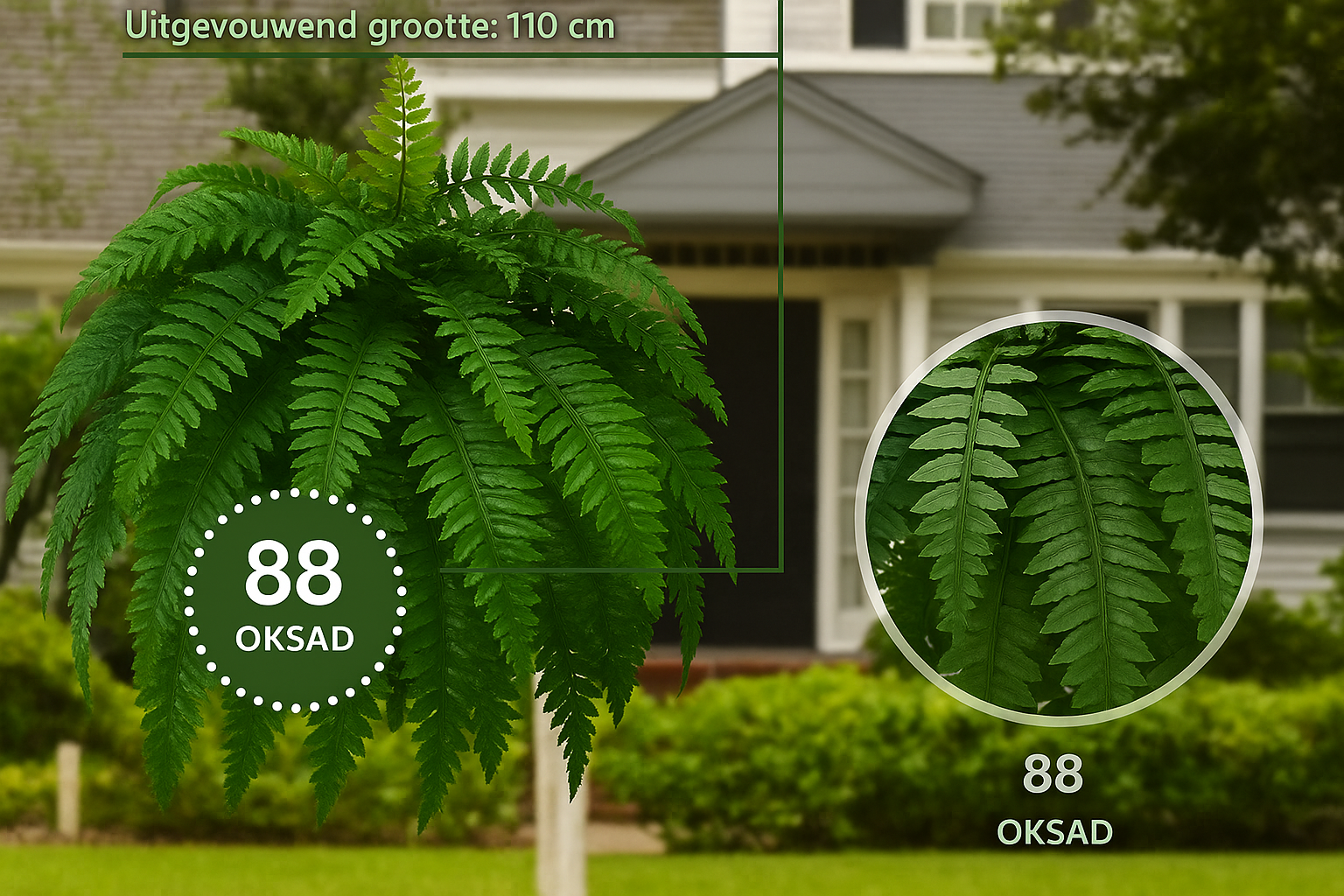 Dekoratiivsel Boston sõnajalal on 18 oksa, mis teeb selle lopsakaks ja täidlaseks. Ühe oksa pikkus kuni 70 cm, kogulaius võib ulatuda 110 cm-ni. Sobib suurepäraselt hoovi, elutuppa, kontorisse ja mujale.