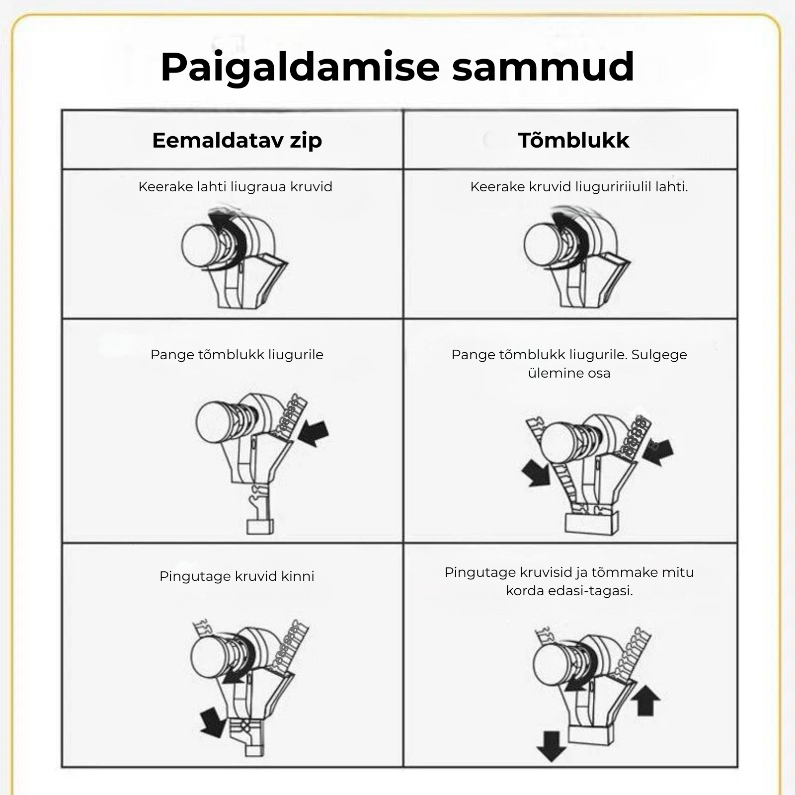 💧 VEEKINDEL TÕMBLUCK: Sobib pööratud ja nähtamatutele tõmblukkudele, tagades sobiva kasutamise igasugustes keskkondades.