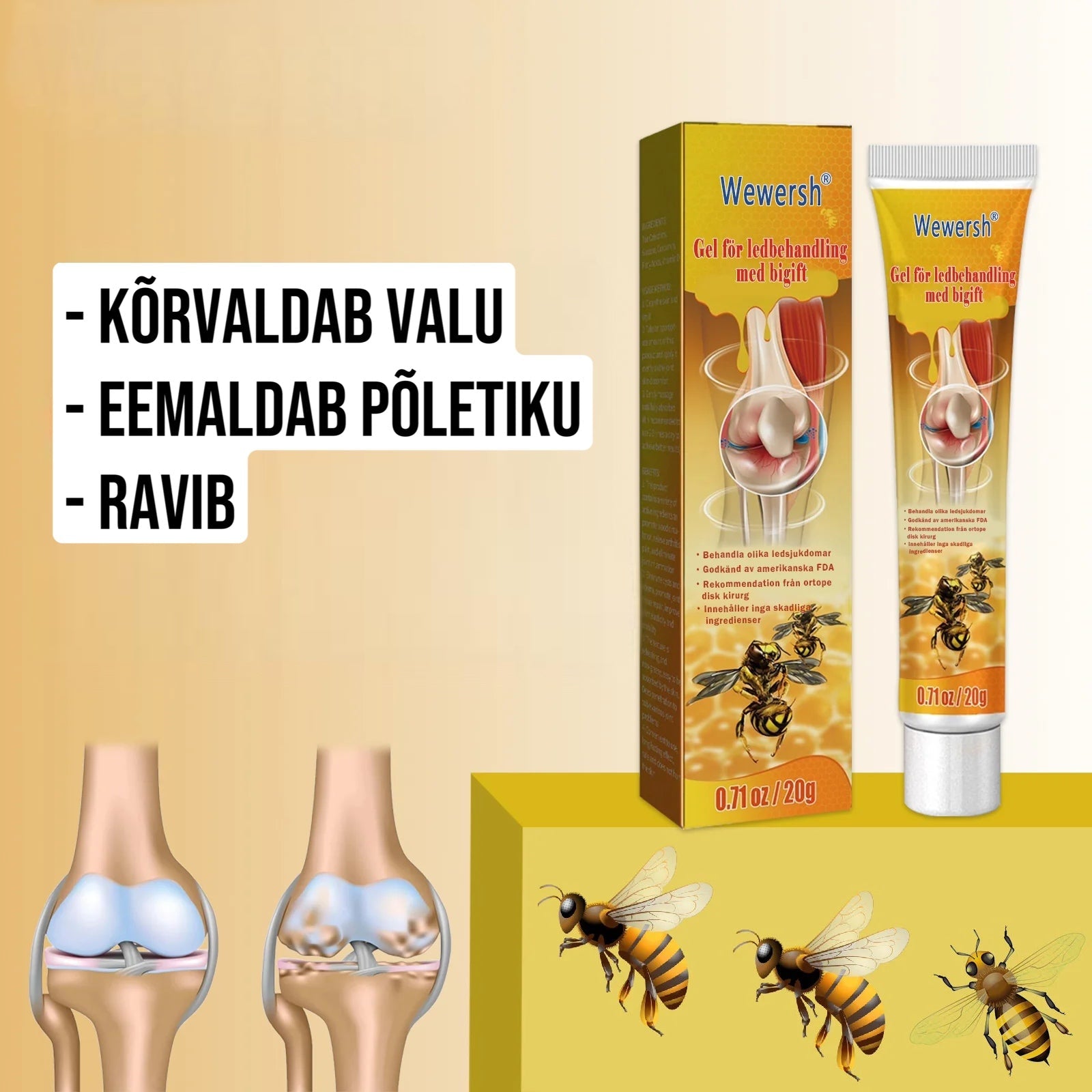 ✔️ Optimaalse toime saavutamiseks kasutage rohke kogus geeli ja laske sellel vähemalt 15 minutit nahal püsida. Mesimürgiga võivad teie liigesed ja nahk tunda end tervena ja nooremana ning te saate nautida aktiivset ja mugavat eluviisi. Üks pakend sisaldab 20 ml geeli.