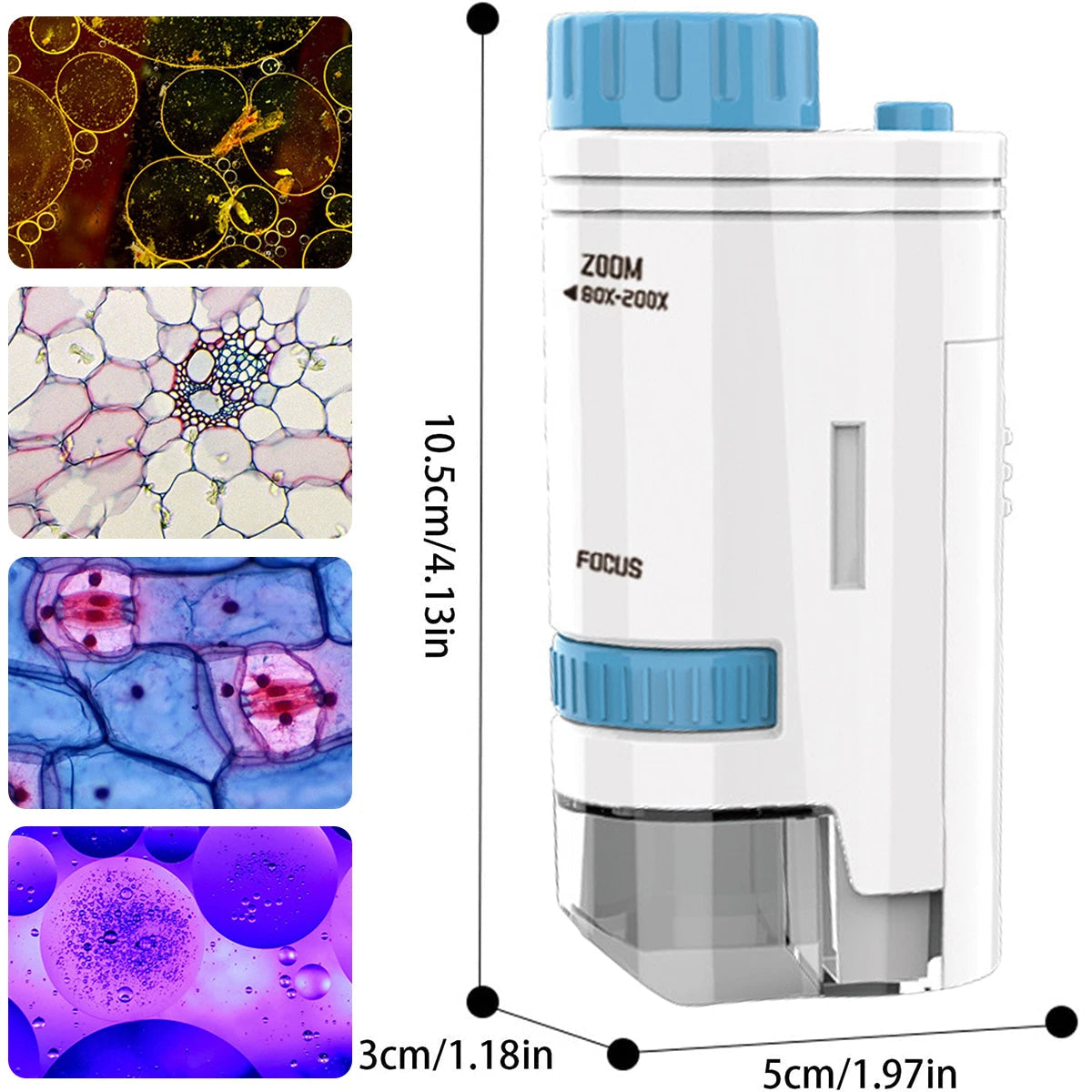 🎒 [Kerge ja mugav kasutada] – See kerge ja kompaktne elektriline mini mikroskoop (10,5 x 5 x 3 cm) mahub kergesti taskusse, mistõttu on seda mugav kanda ja kasutada nii kodus kui ka õues.