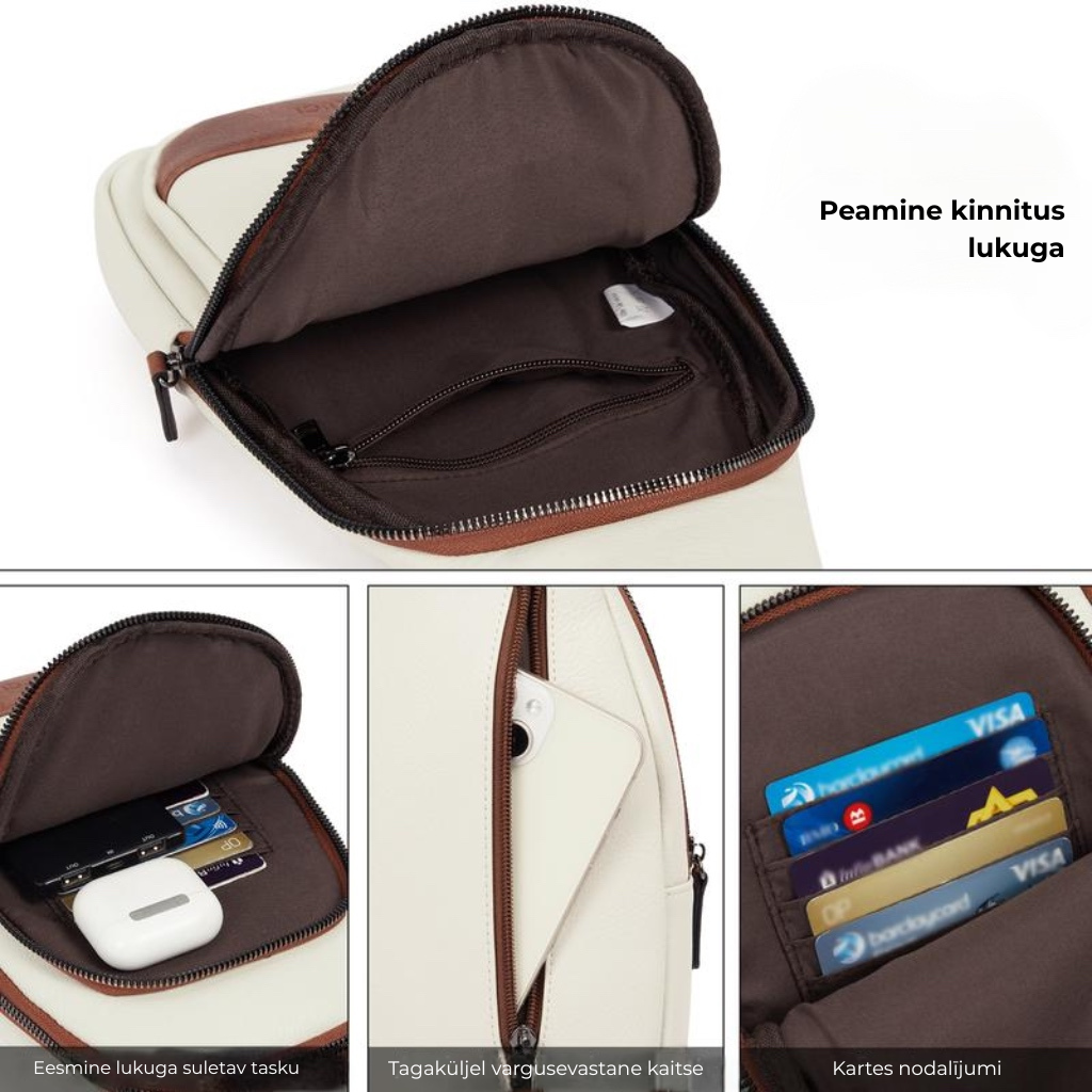 PALJU SAHTLEID – Kotil on mitu lukuga suletavat sektsiooni, mis aitavad hoida hädavajalikud asjad korras – telefon, rahakott, võtmed või kosmeetika. Tagab korra ja lihtsa ligipääsu igapäevaseks kasutamiseks.