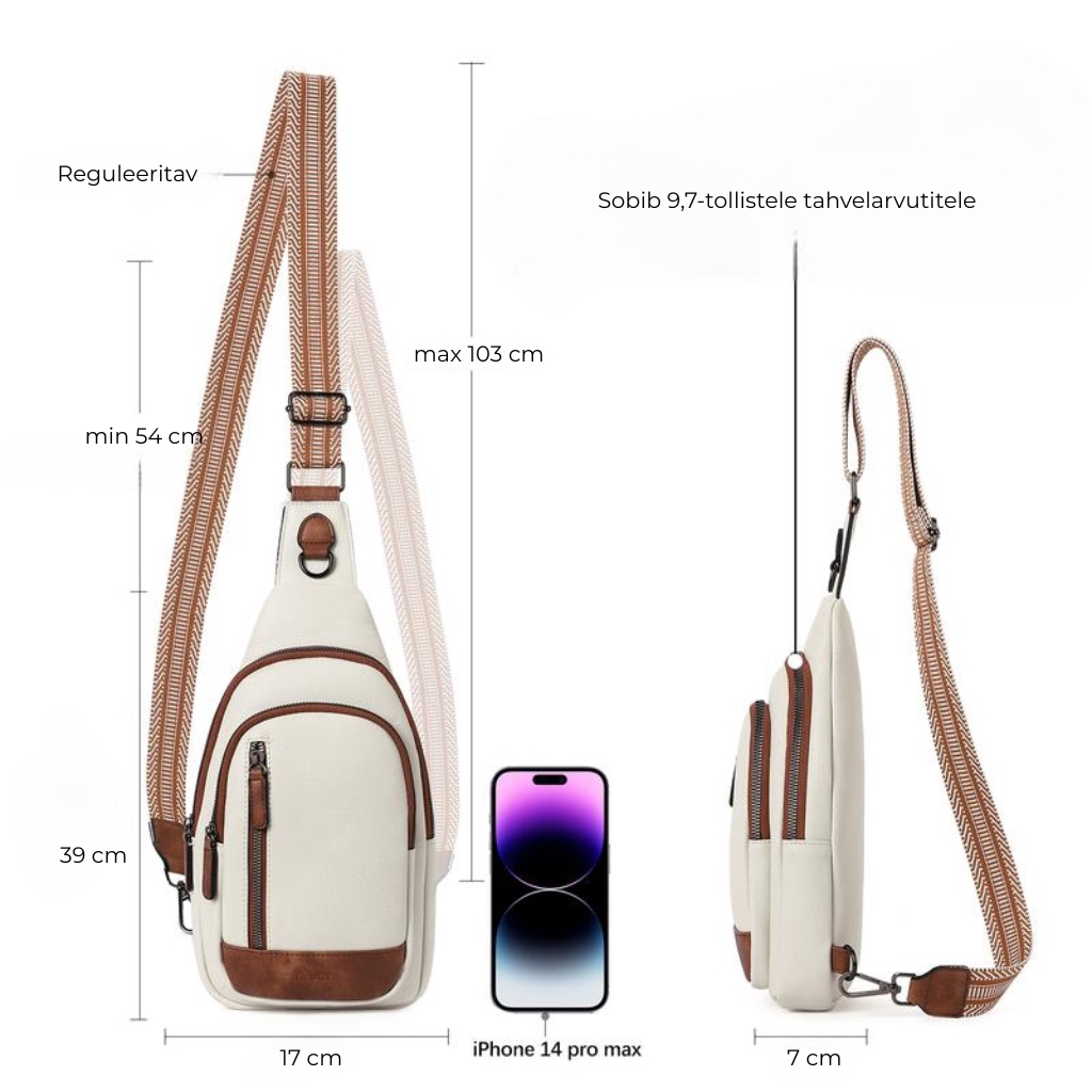 REGULEERITAV ÕLARIHM – Disainitud reguleeritavate õlarihmadega, et sobida erinevatele kehatüüpidele ja stiilidele. Rihma pikkust saab hõlpsalt kohandada, et kotti kanda üle õla või ristipidi üle keha – see suurendab mugavust ja kasutusmugavust.