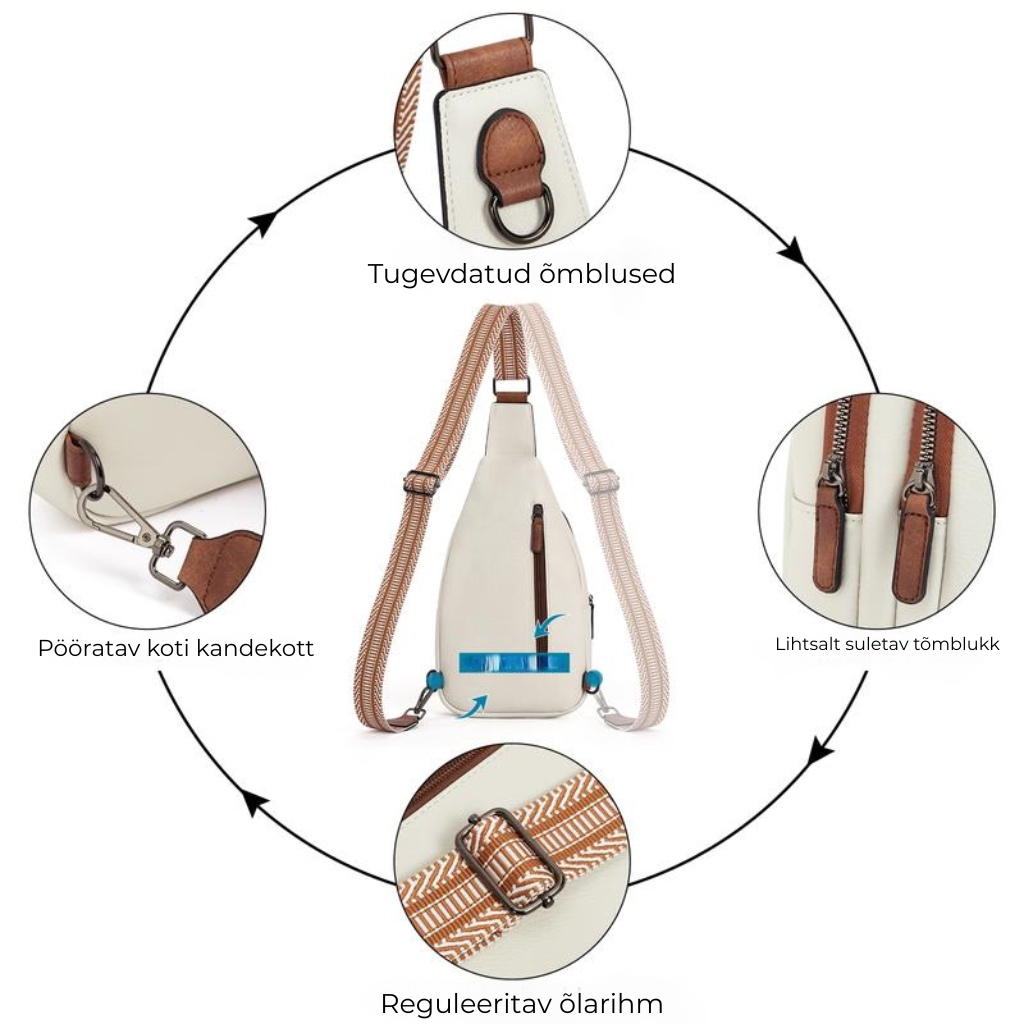EEMALDATAV KONSTRUKTSIOON – Kotil on eemaldatav õlarihm, tänu millele saab selle kiiresti kohandada või hõlpsasti hoiustada. Lihtne ja läbimõeldud pandlahahendus lisab modernse stiilielemendi.