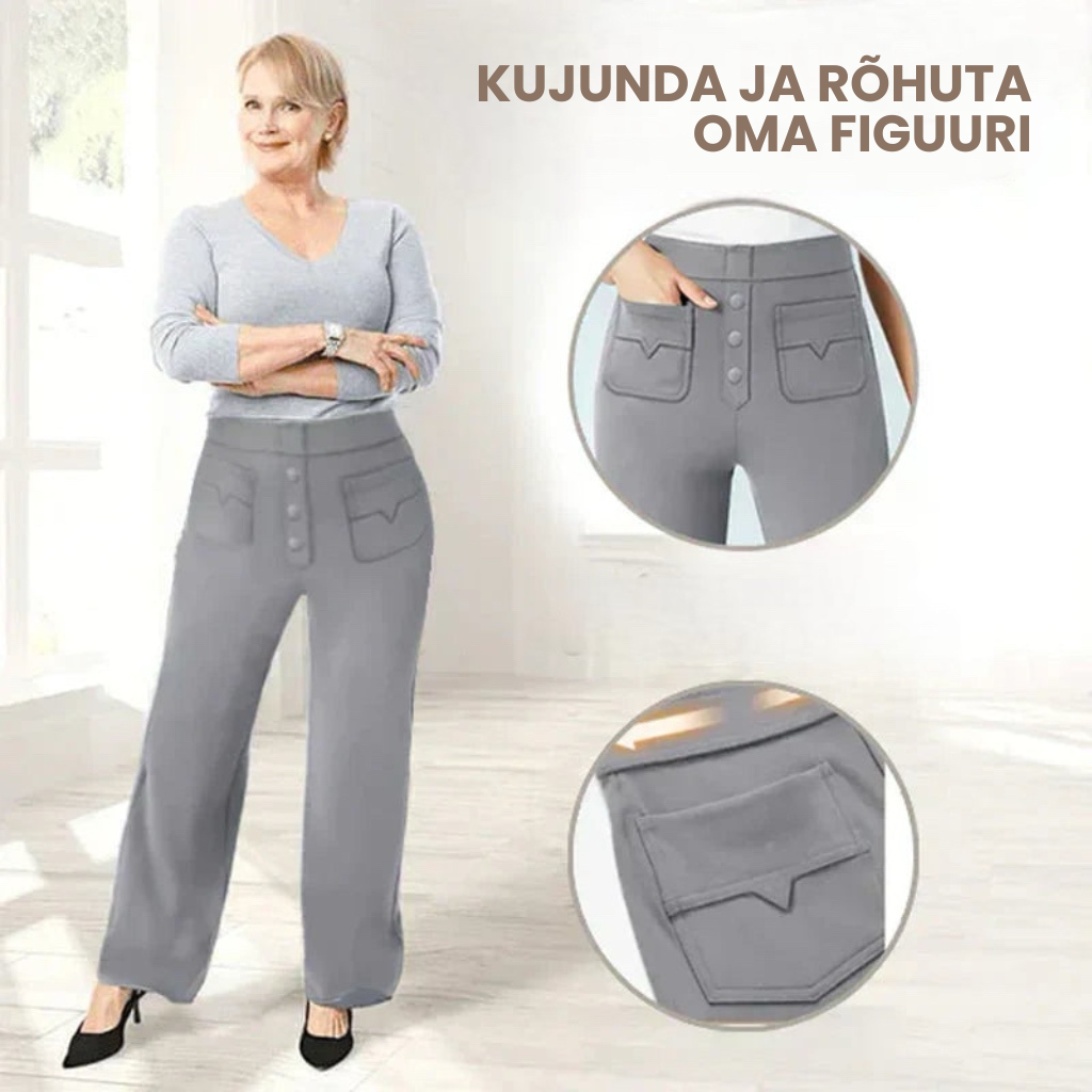 Naudi kaunist siluetti kõrge vöökohaga, mis õrnalt rõhutab piha, pakkudes nii mugavust kui ka stiili. Igal korral näed korrektne välja ja tunned end kindlalt – sobib ideaalselt igaks puhuks.
