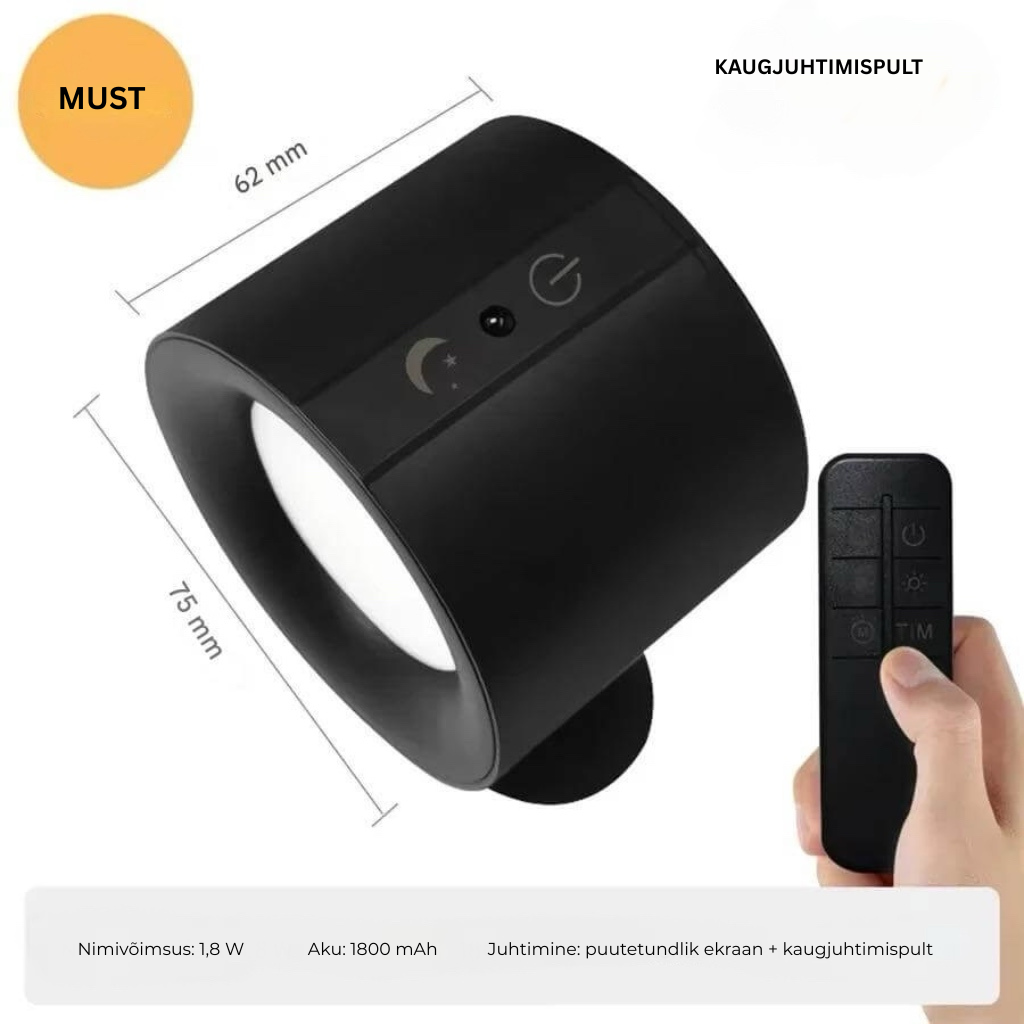 - Juhtmevaba töö: laetav 1800 mAh aku välistab juhtmete vajaduse ja võimaldab lampi lihtsalt ümber paigutada