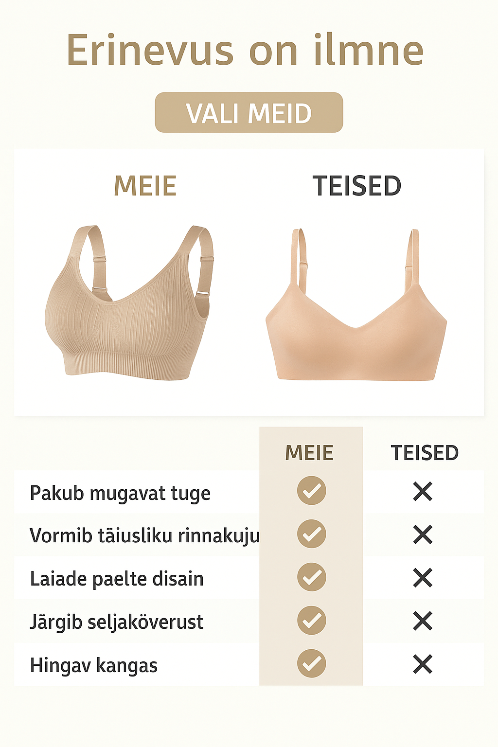 ✔️ Ilma metallist traadita – ainult loomulik ja õrn tugi