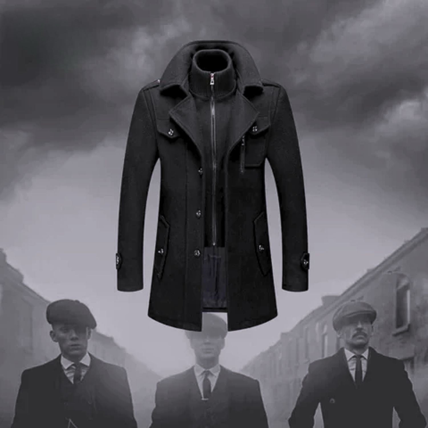 Tunne end nagu Thomas Shelby sel talvel koos WoolGuard™ Peaky Blinders talvemantliga. See luksuslik trench-mantel, mille inspiratsiooniks on ikooniline Peaky Blinders stiil, ühendab klassikalise sõjaväemantli võlu ja soojust, mis kaitseb sind külmadel talvekuudel. Tänu oma topeltkraele, kvaliteetsetele materjalidele ja ajatule lõikele on see ideaalne valik igale mehele, kes soovib kiirata jõudu ja stiili.