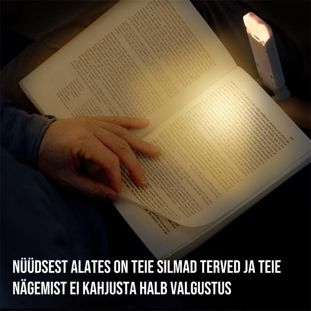 Kompaktne ja kerge - minisuurune disain, väike ja kerge, ideaalne raamatu külge kinnitamiseks öisel lugemisel. Lambi saab täiesti lamedaks ja õhukeseks kokku voltida, kasutada kahekordse järjehoidjana, kaasas kanda lugemiseks lennukis, rongis või auto tagaistmel reisil olles.