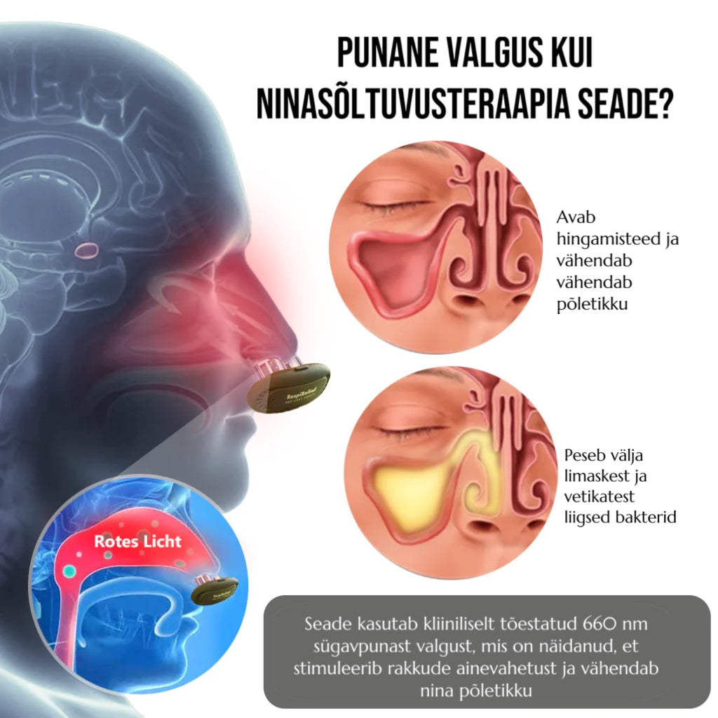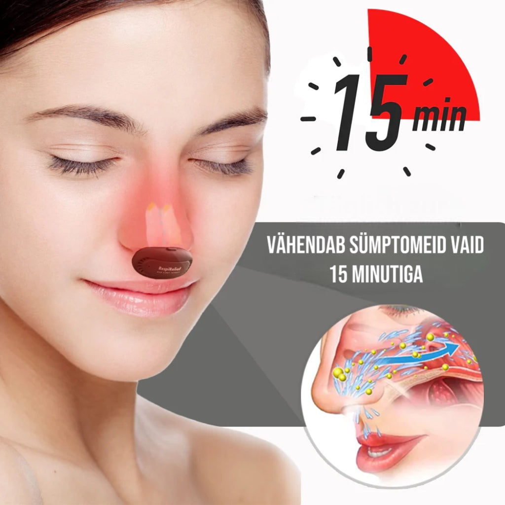 RespiRelief on uuenduslik seade, mis kasutab külmetushaiguse sümptomite vähendamiseks rotlichtravi.