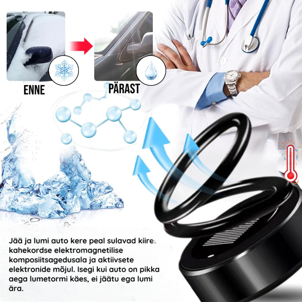 Vastus. See seade on loodud nii, et seda oleks lihtne kasutada. Sellel on hõlpsasti paigaldatav alus ja see töötab päikesepaneelidest, seega ei ole vaja välist toiteallikat. Asetage see lihtsalt oma autosse ja see hakkab tööle, hoides teie sõiduki jääst ja lumest vabana.