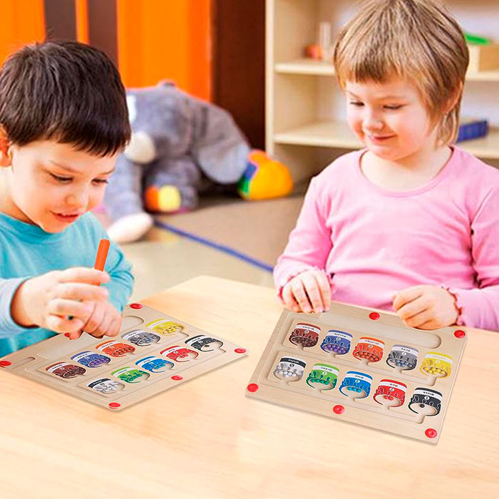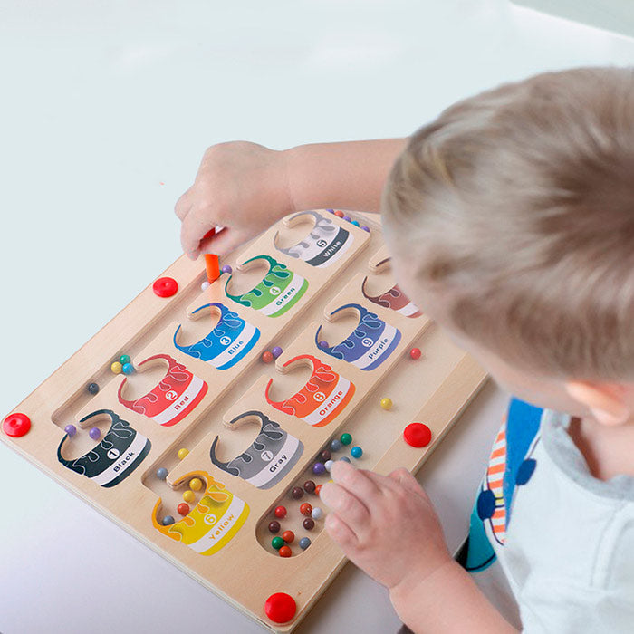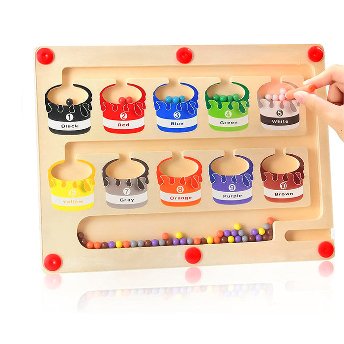 See didaktiline mänguasi sisaldab pulka, millega laps sorteerib värvilisi magnetpalle õigesse lahtrisse!