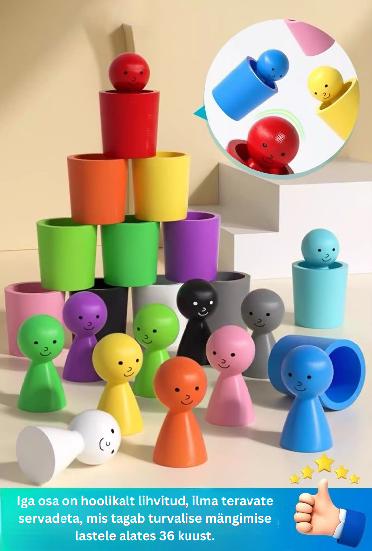 🧠 Kognitiivne areng: Aitab väikelastel arendada värvide äratundmise, sorteerimise oskusi ja käte-silma koordinatsiooni.