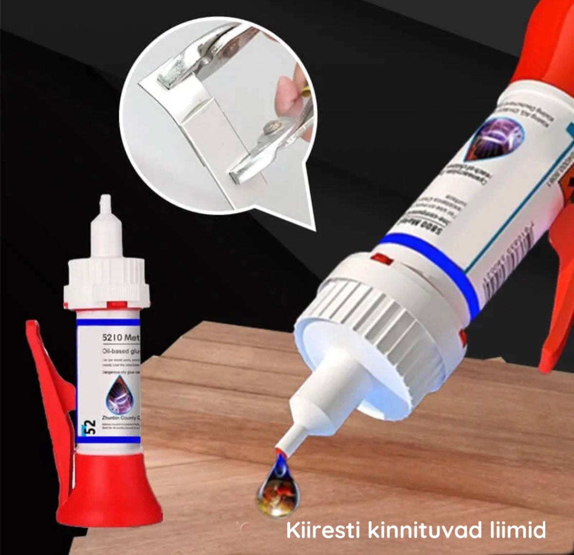 UNIVERSAALNE LIIM - sobib pindadele, sealhulgas metallile, puidule, kummi ja enamikule plastidele. Saab kanda tasastele, vertikaalsetele, ebatasastele ja ülevalpool asuvatele pindadele.